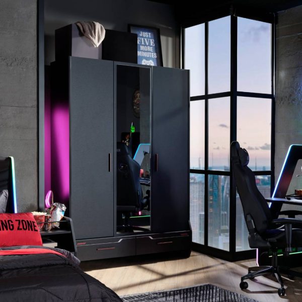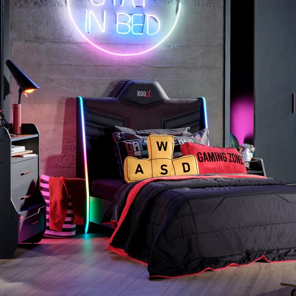 ROOX 120X200 BED FRAME &HB WITH LED LIGHT U BLACK